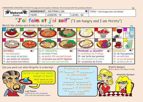 Associated with meals, menus, restaurants) menus and ordering food in French After completing the learning experiences below, students will know, understand and/or be able to: talk about their favourite foods create a restaurant and its French ... Read Document